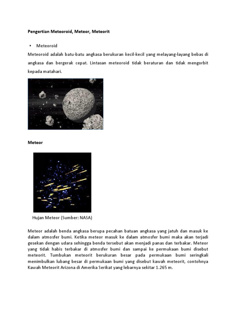 Kunci Jawaban Jelaskan Perbedaan Antara Meteoroid Meteor Dan Meteorit Rofa Education Centre
